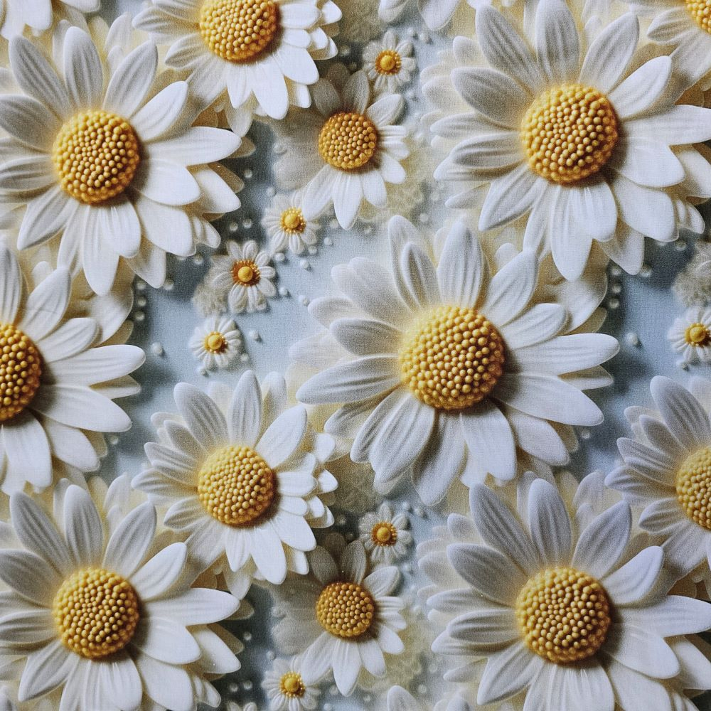 Decotex Style Material textil ranforce 5D, 240cm, bumbac 100%, Alb cu margarete