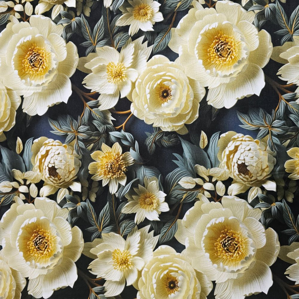 Material textil ranforce 5D, 240cm, bumbac 100%, Bleumarin cu flori albe