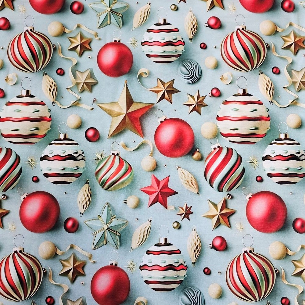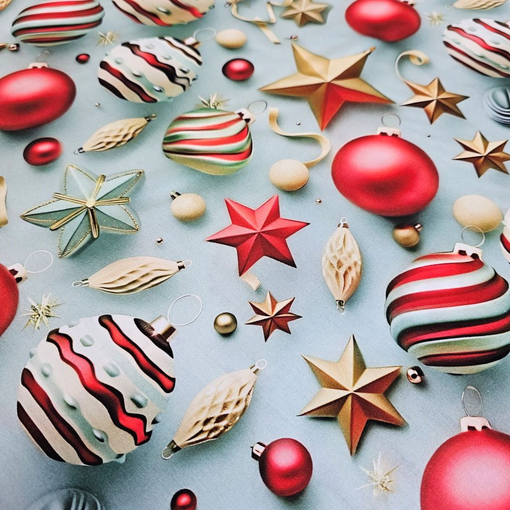 Decotex Style Material textil ranforce 5D, 240cm, bumbac 100%, Craciun - Bleu cu globulete