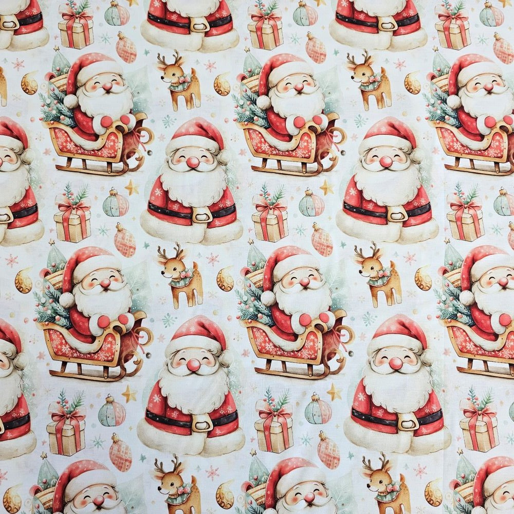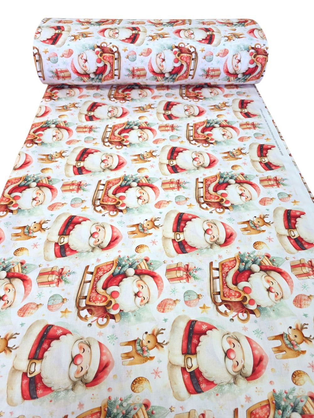 Material textil ranforce 5D, 240cm, bumbac 100%, Craciun - Mos Craciun cu sanie