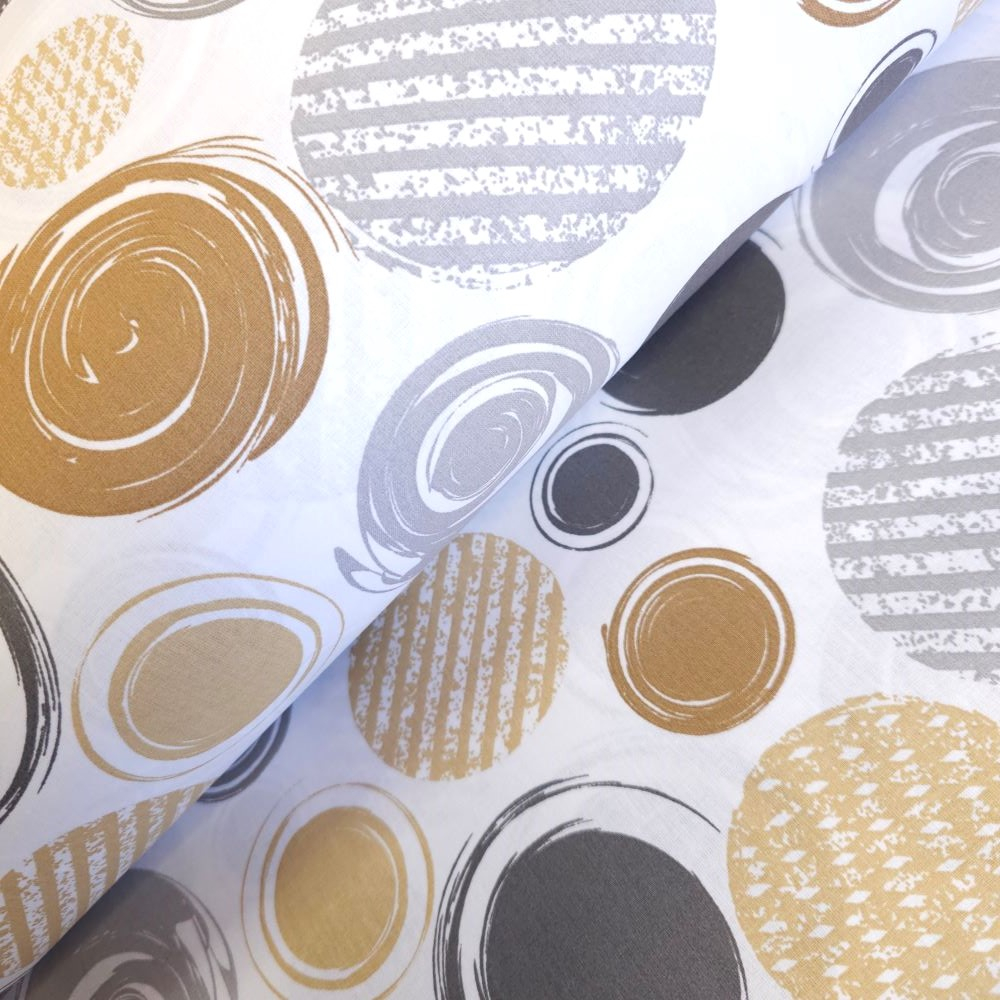 Material textil ranforce, 240cm, bumbac 100%, Alb cu buline gri si bej