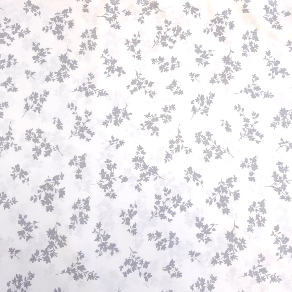 Material textil ranforce, 240cm, bumbac 100%, Alb cu floricele gri