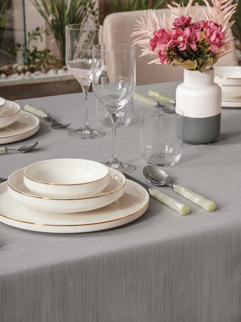 Față de masă pentru zi de zi confecționată dintr -un material ce imită pânza de casă, ușor de curățat și întreținut, o față de masă ce dă un aspect elegant în casa ta.