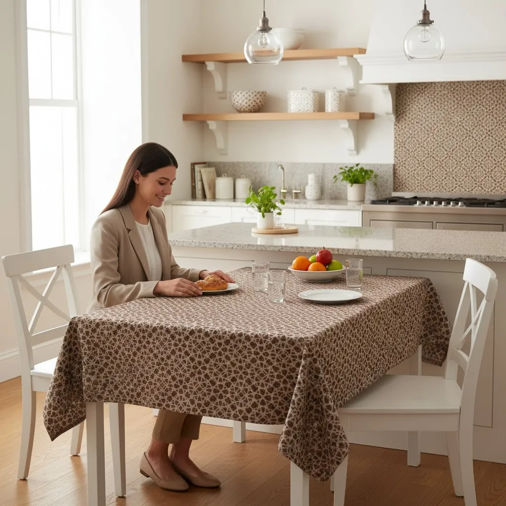Adaugă un strop de eleganță și funcționalitate mesei tale cu fața de masă, tratată cu Teflon pentru protecție suplimentară! Confecționată dintr-un material natural, de înaltă calitate, această față de masă nu doar că îți va înfrumuseța locul de servire, dar va rezista și în fața diverselor provocări zilnice. Tratamentul cu Teflon o face antiaderentă , protejând-o eficient împotriva petelor și lichidelor, astfel încât să te bucuri de mese fără grija curățării constante. Datorită acestui strat inovator, fața de masă își menține aspectul impecabil, chiar și în fața celor mai încăpățânate urme de alimente sau băuturi. Avantaje : Tratament Teflon : Protecție de lungă durată împotriva petelor și umezelii. Ușor de întreținut : Se curăță rapid și simplu, păstrându-și aspectul ca nou. Rezistentă și durabilă : Ideală pentru orice tip de eveniment, de la cine de zi cu zi până la petreceri festive. Perfectă pentru orice masă, fie că este vorba de un prânz în familie sau de o cină elegantă, fața de masă din bumbac tratată cu Teflon adaugă atât stil, cât și practică în orice bucătărie sau sufragerie.