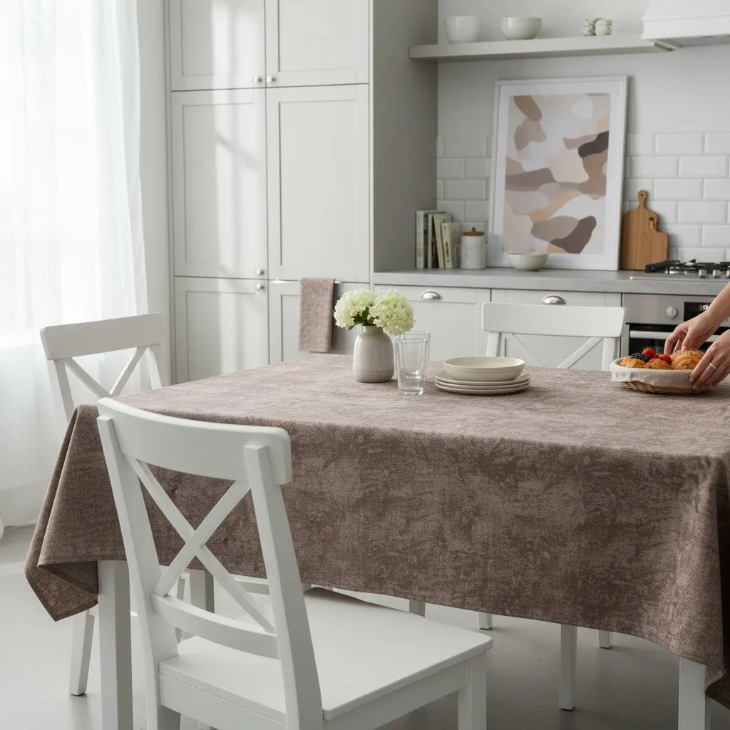 Adaugă un strop de eleganță și funcționalitate mesei tale cu fața de masă, tratată cu Teflon pentru protecție suplimentară! Confecționată dintr-un material natural, de înaltă calitate, această față de masă nu doar că îți va înfrumuseța locul de servire, dar va rezista și în fața diverselor provocări zilnice. Tratamentul cu Teflon o face antiaderentă , protejând-o eficient împotriva petelor și lichidelor, astfel încât să te bucuri de mese fără grija curățării constante. Datorită acestui strat inovator, fața de masă își menține aspectul impecabil, chiar și în fața celor mai încăpățânate urme de alimente sau băuturi. Avantaje : Tratament Teflon : Protecție de lungă durată împotriva petelor și umezelii. Ușor de întreținut : Se curăță rapid și simplu, păstrându-și aspectul ca nou. Rezistentă și durabilă : Ideală pentru orice tip de eveniment, de la cine de zi cu zi până la petreceri festive. Perfectă pentru orice masă, fie că este vorba de un prânz în familie sau de o cină elegantă, fața de masă din bumbac tratată cu Teflon adaugă atât stil, cât și practică în orice bucătărie sau sufragerie.