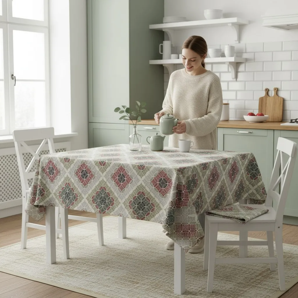 Adaugă un strop de eleganță și funcționalitate mesei tale cu fața de masă, tratată cu Teflon pentru protecție suplimentară! Confecționată dintr-un material natural, de înaltă calitate, această față de masă nu doar că îți va înfrumuseța locul de servire, dar va rezista și în fața diverselor provocări zilnice. Tratamentul cu Teflon o face antiaderentă , protejând-o eficient împotriva petelor și lichidelor, astfel încât să te bucuri de mese fără grija curățării constante. Datorită acestui strat inovator, fața de masă își menține aspectul impecabil, chiar și în fața celor mai încăpățânate urme de alimente sau băuturi. Avantaje : Tratament Teflon : Protecție de lungă durată împotriva petelor și umezelii. Ușor de întreținut : Se curăță rapid și simplu, păstrându-și aspectul ca nou. Rezistentă și durabilă : Ideală pentru orice tip de eveniment, de la cine de zi cu zi până la petreceri festive. Perfectă pentru orice masă, fie că este vorba de un prânz în familie sau de o cină elegantă, fața de masă din bumbac tratată cu Teflon adaugă atât stil, cât și practică în orice bucătărie sau sufragerie.
