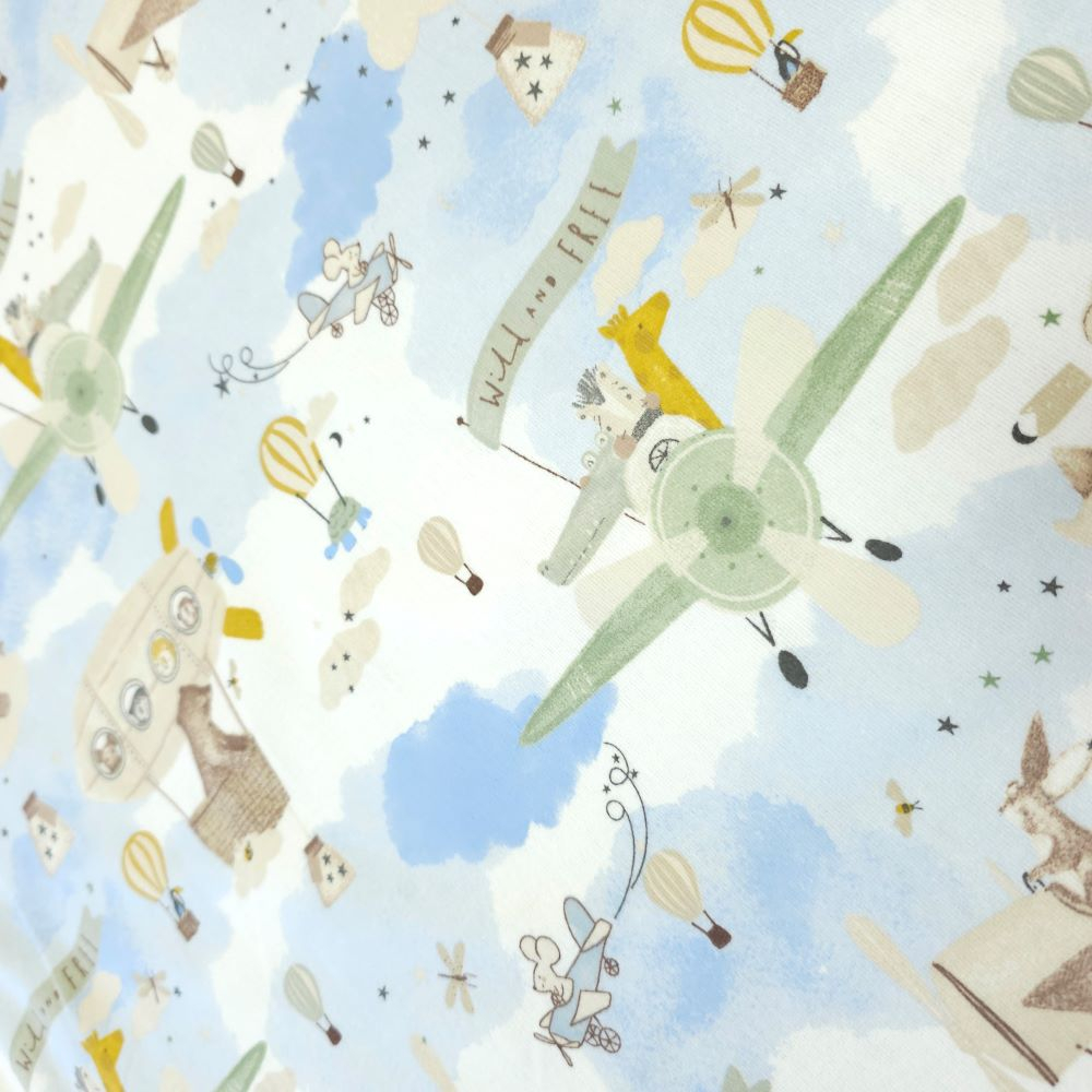 Material textil finet, 150cm, 100% bumbac, Alb cu avioane verzi