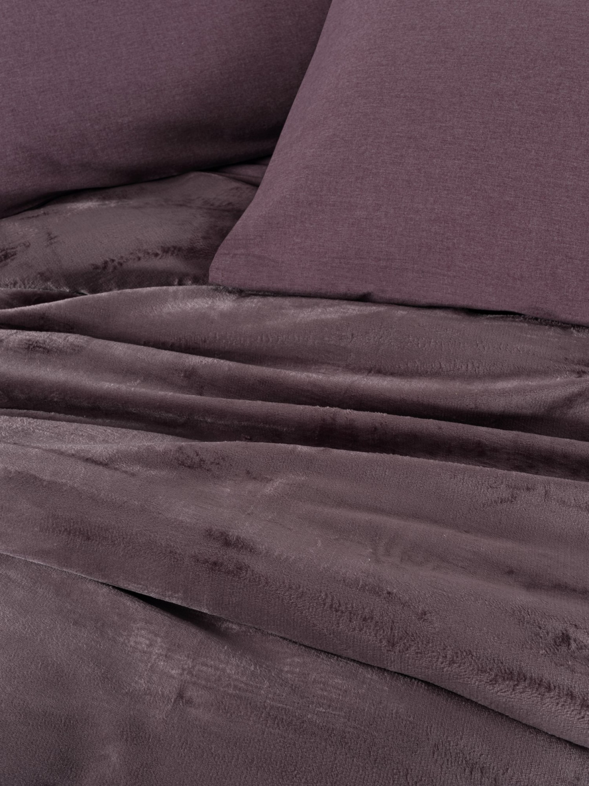 Lenjerie de pat catifea si bumbac 4 piese, Cotton Box, Flossy - Plum