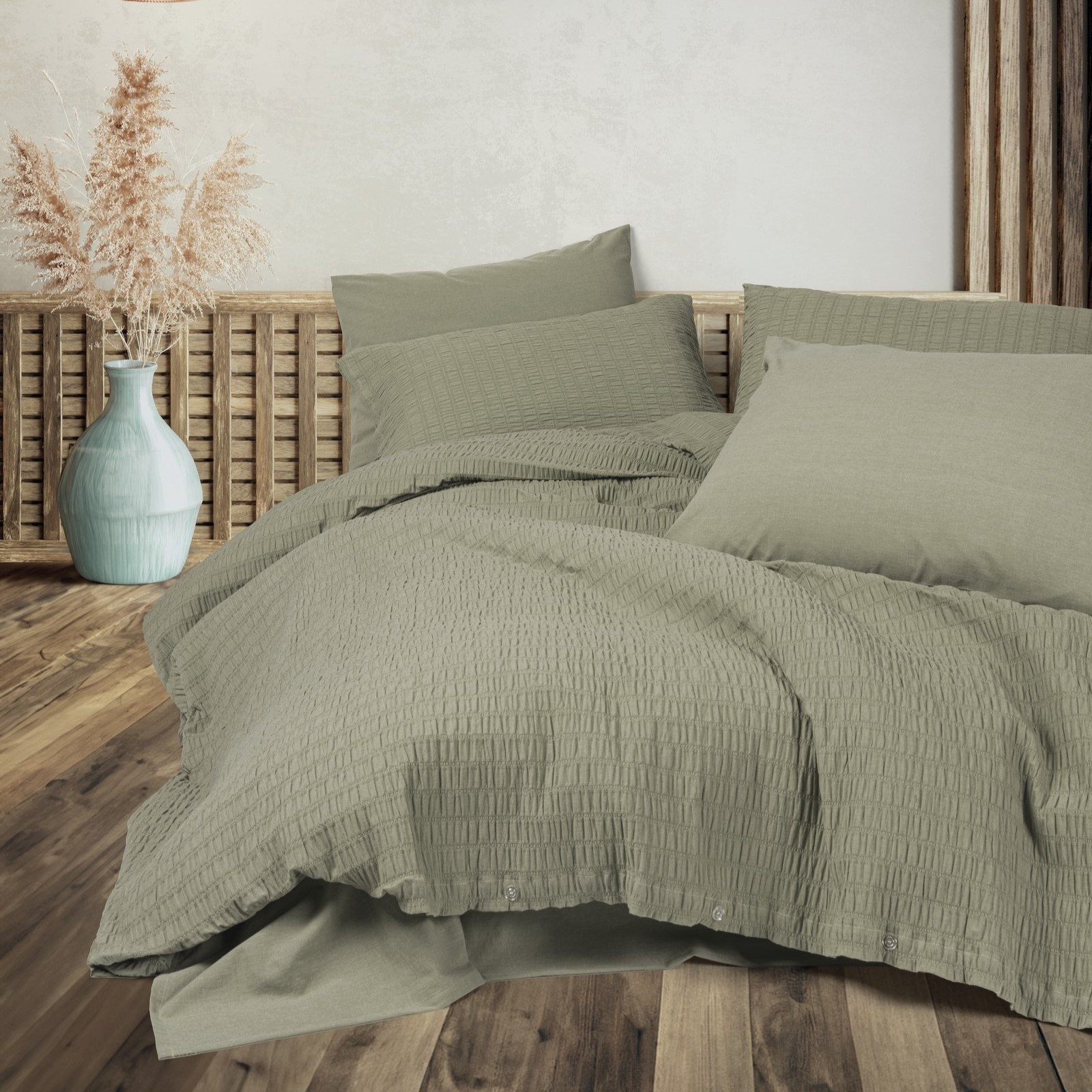 Lenjerie pat dublu, creponată, 6 piese,Cotton Box, Sungai - Green