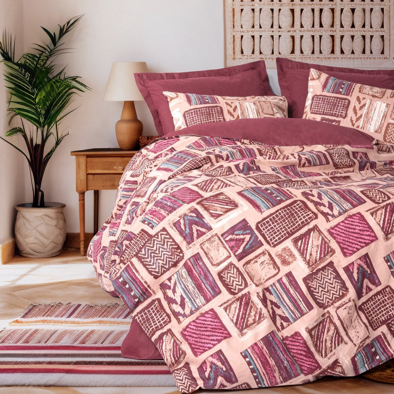 Lenjerie de pat ranforce, o persoana, bumbac 100%, Cotton Box, Estilıo - Claret Red