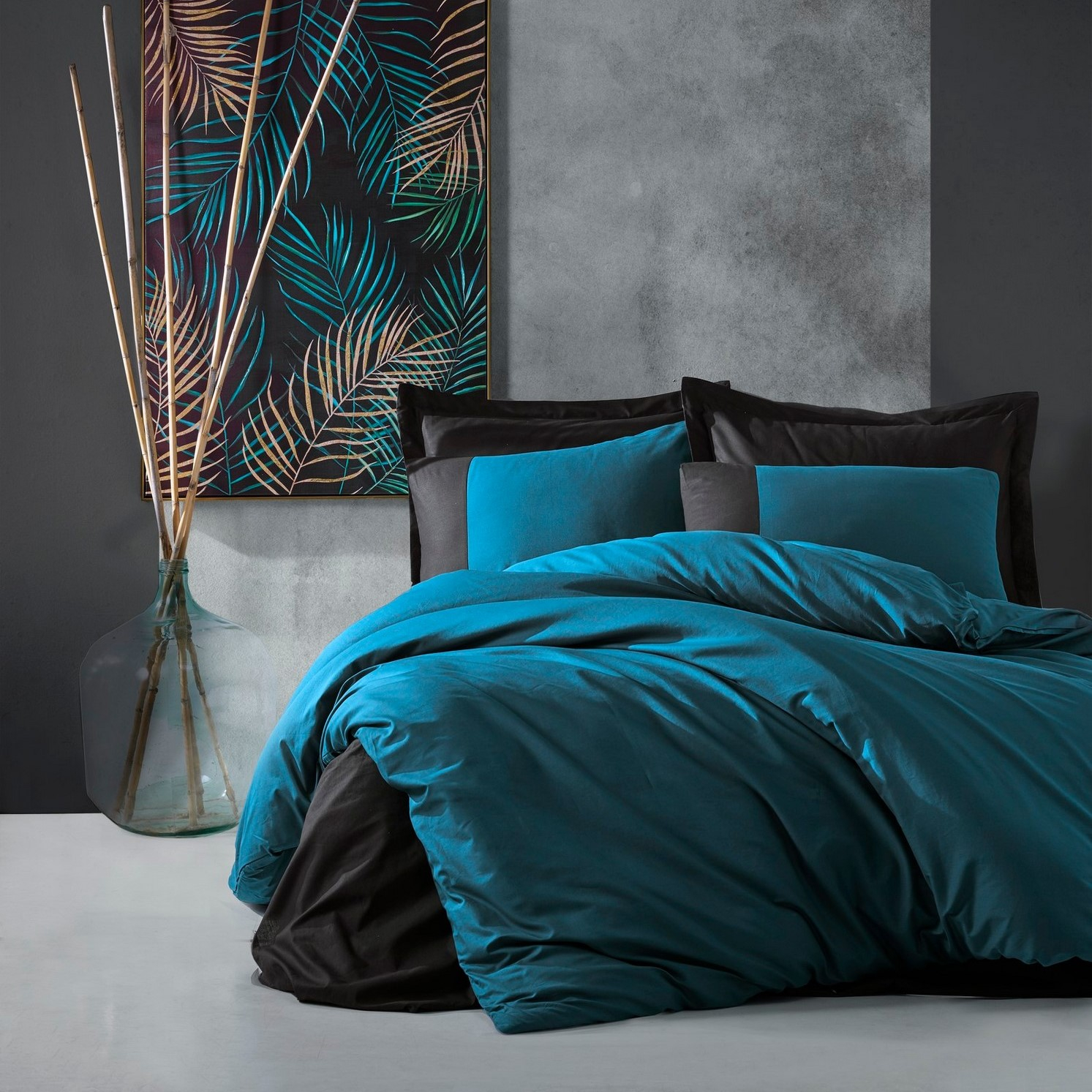 Lenjerie de pat ranforce, o persoana, bumbac 100%, Cotton Box, Plain - Petrol Blue