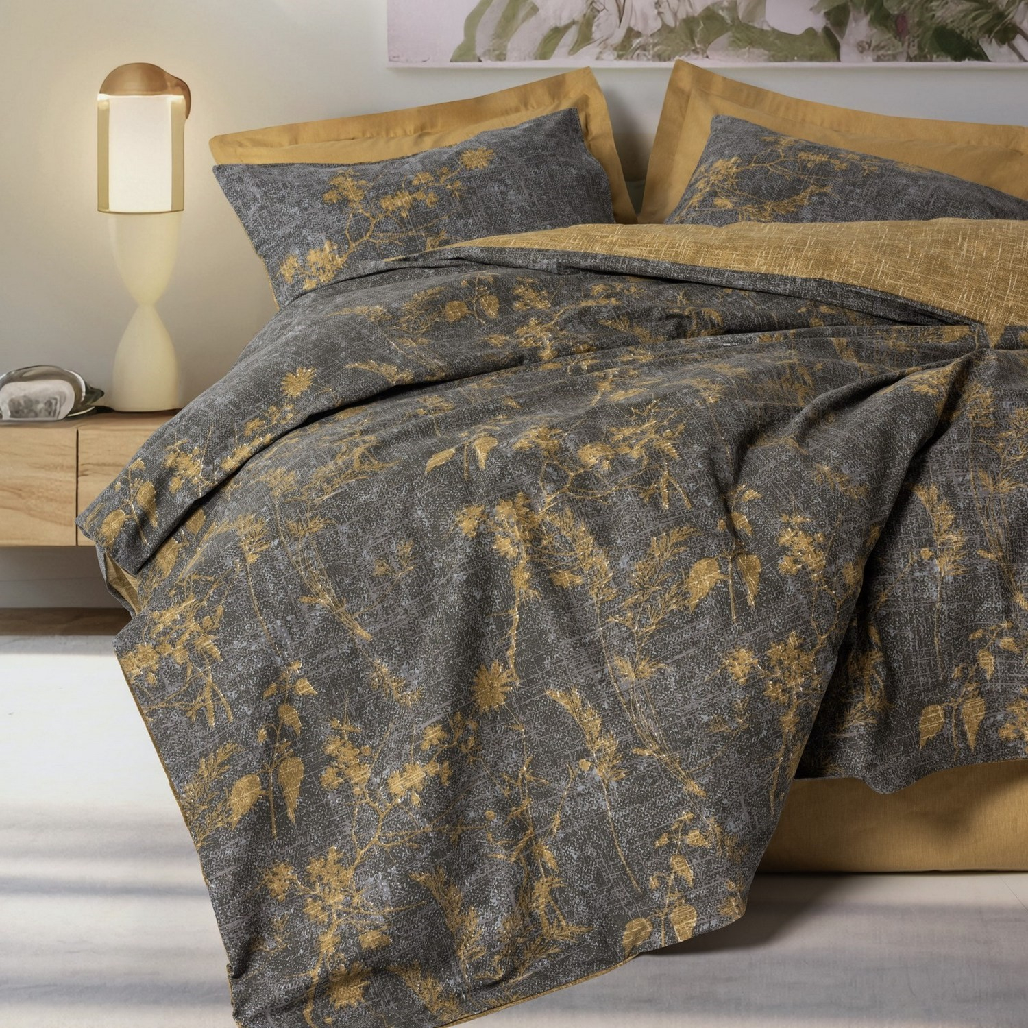 Lenjerie de pat ranforce, o persoana, bumbac 100%, Cotton Box, Yadawa - Mustard