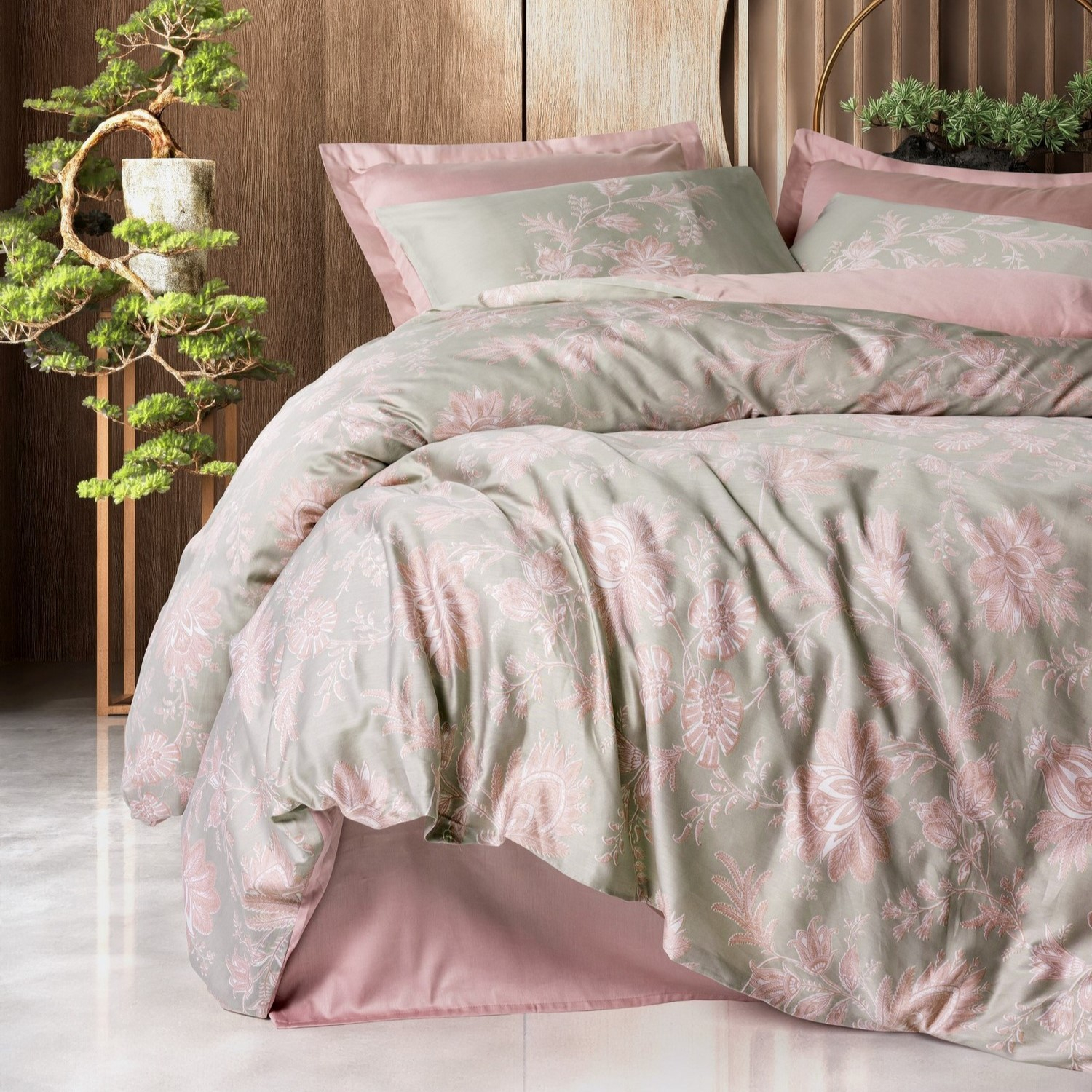 Lenjerie de pat satin, 6 piese, bumbac 100%, Cotton Box, Betula - Powder
