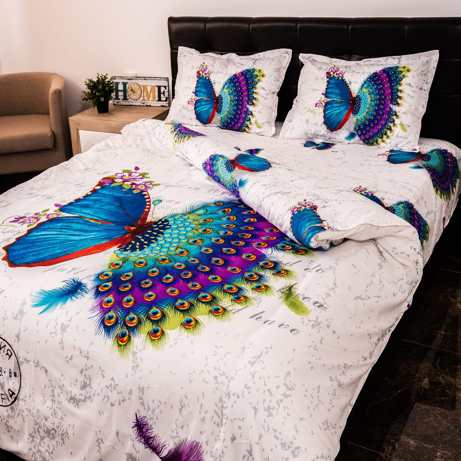 Ralex Pucioasa Lenjerie de pat digital print 3D (BUTTERFLY PEACOCK)