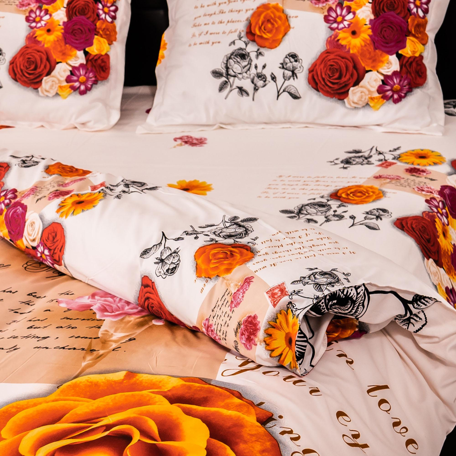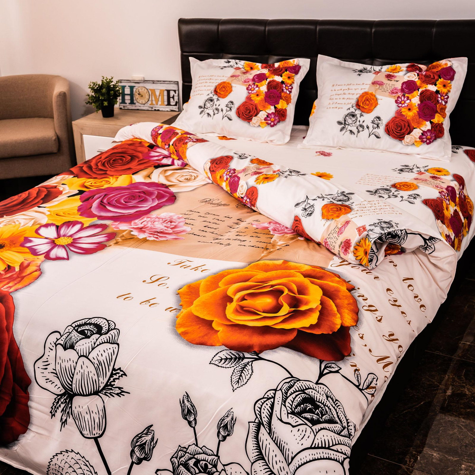 Cearsaf de pat 220x230cm Cearsaf de pilota 200x230cm Fete perna 50x70cm +2 xm tiv Densitate tesatura 100gr. Compozitie textila 50%bumbac+50%poliester Ambalaj punga pvc Colorant reactiv print Instructiuni de intretinere-se spala la 40* mecanic sau manual-se calca max. 150*-se curata chimic-se usuca normal