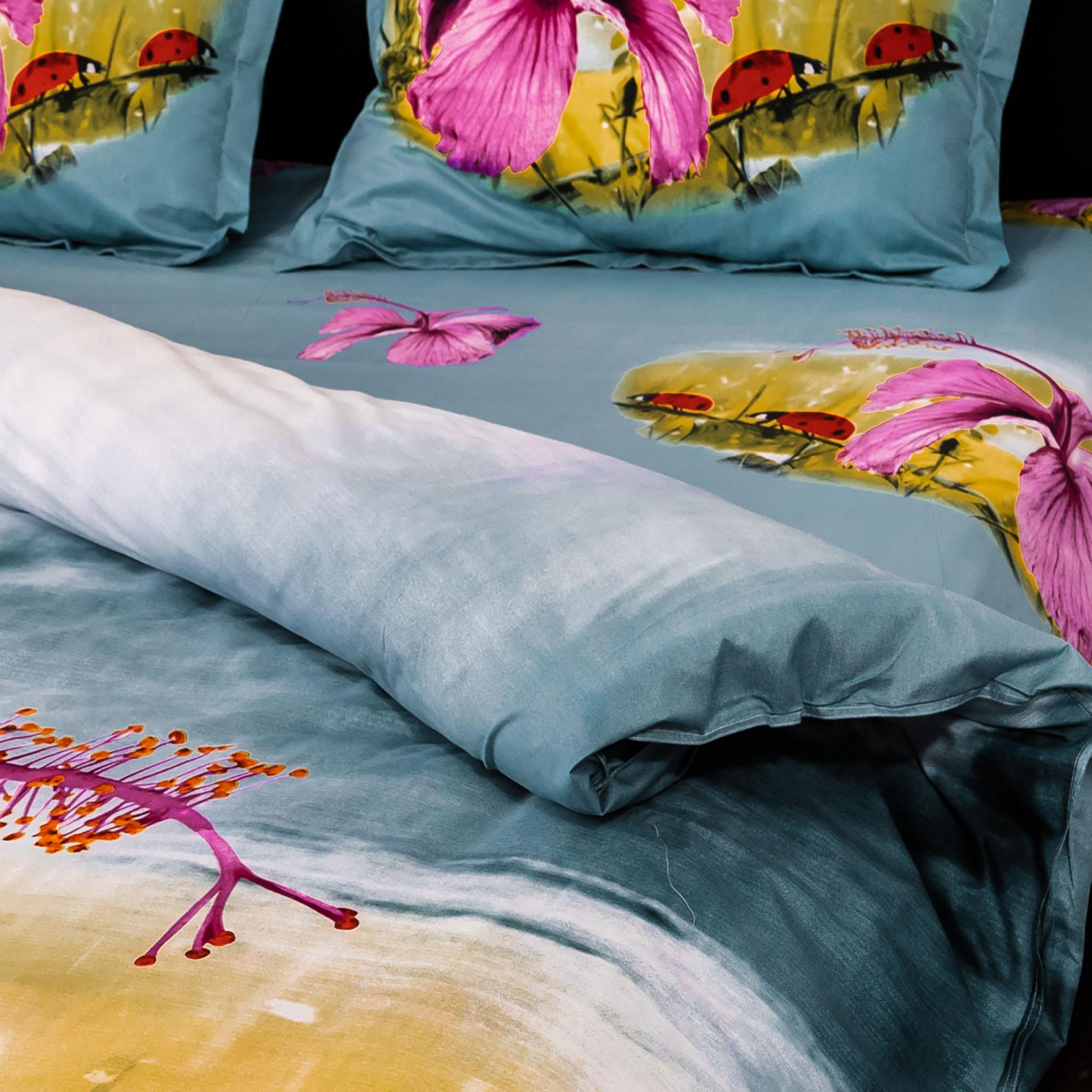 Cearsaf de pat 220x230cm Cearsaf de pilota 200x230cm Fete perna 50x70cm +2 xm tiv Densitate tesatura 100gr. Compozitie textila 50%bumbac+50%poliester Ambalaj punga pvc Colorant reactiv print Instructiuni de intretinere-se spala la 40* mecanic sau manual-se calca max. 150*-se curata chimic-se usuca normal