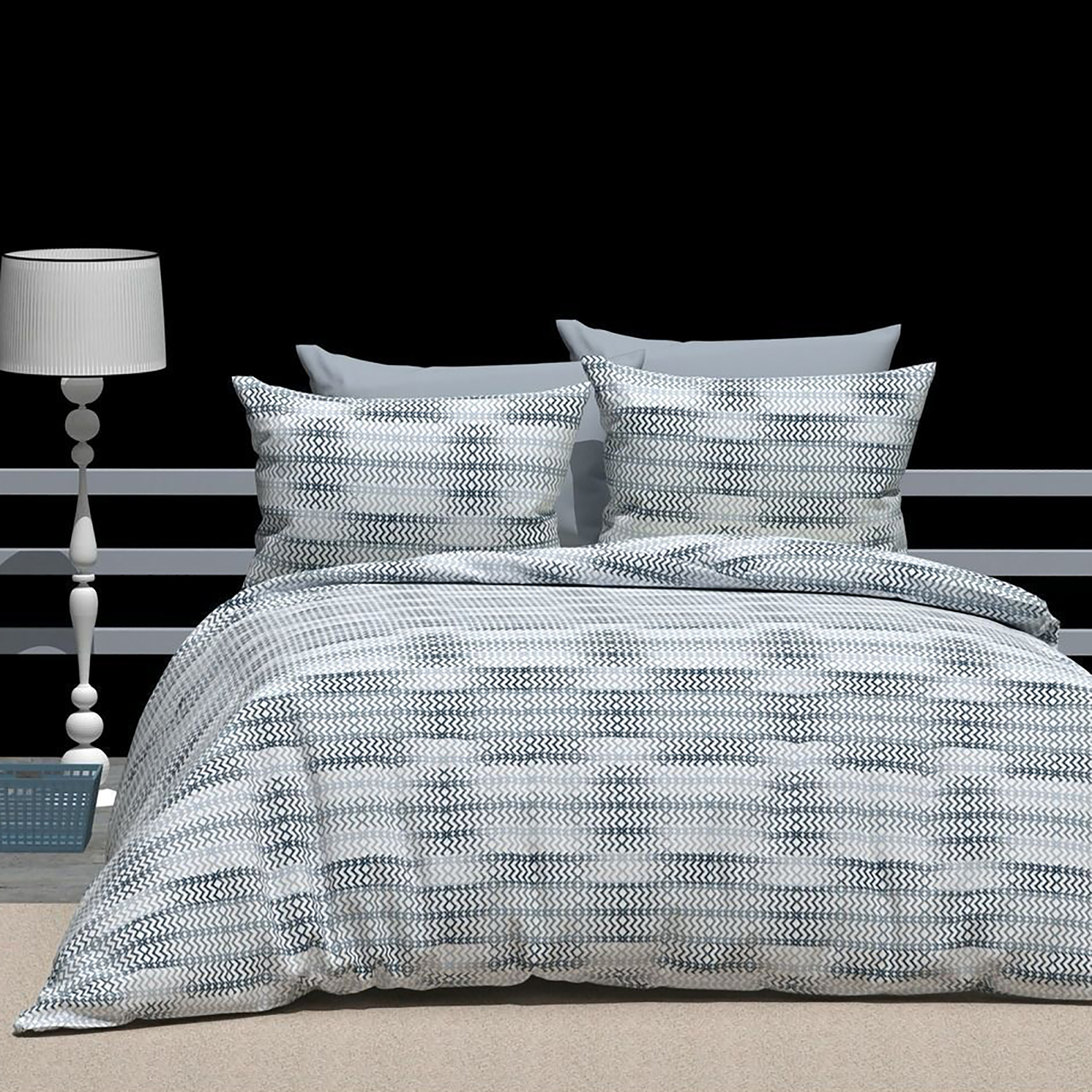 Descriere produs: Comopziție textilă: 70% bumbac, 30%poliester Densitate: 120g/m2 Fetele de pernă cu tiv de 2 cm, închidere cu flep de 25cm Dimensiuni: - Cearșaf pat 240x260cm - Cearșaf pilotă 200x230cm - 2 Fețe pernă: 50x70cm Ambalat în cutie cadou