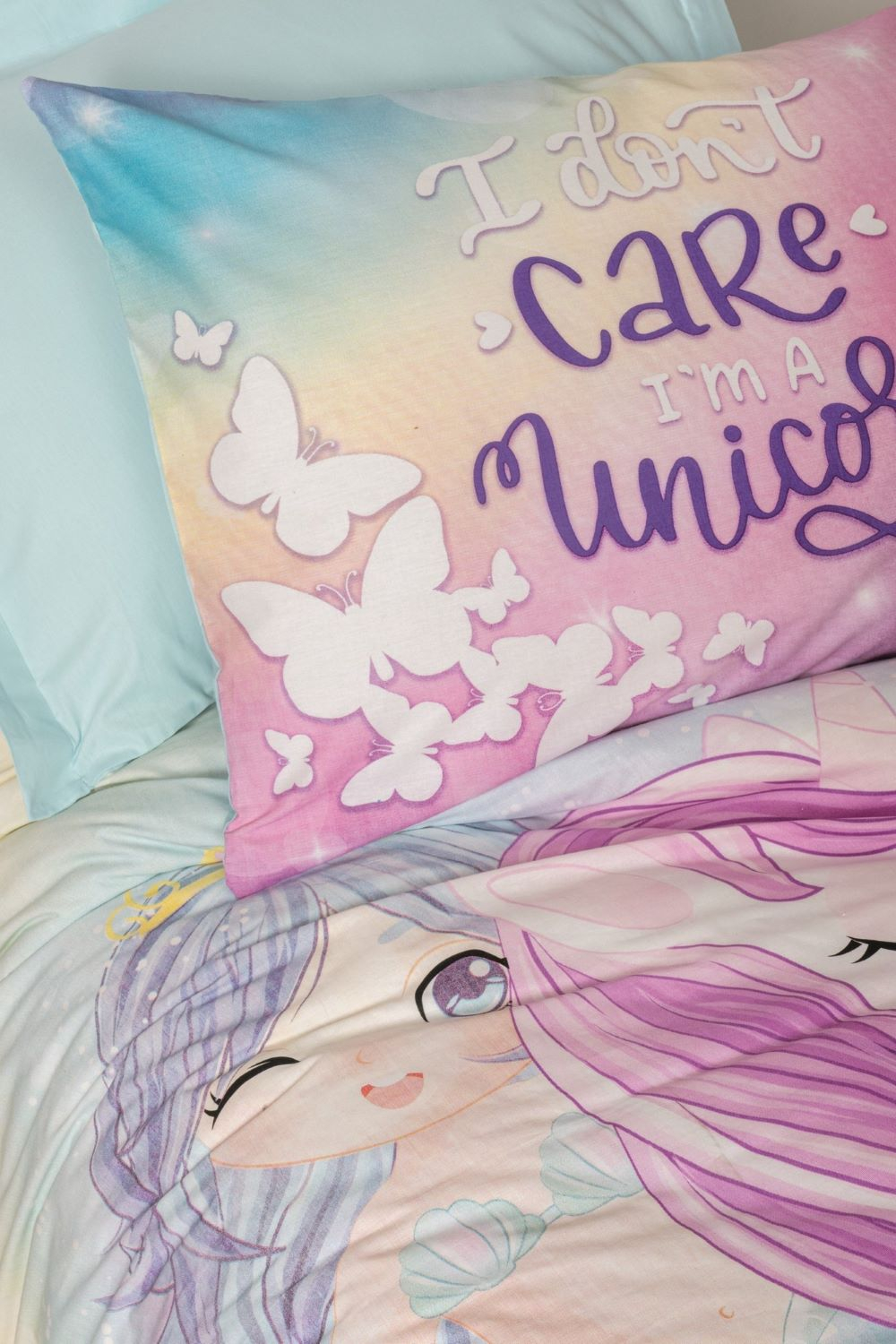 Lenjerie de pat cu elastic, o persoana, bumbac 100%, Cotton Box, Sirena - Mint v2