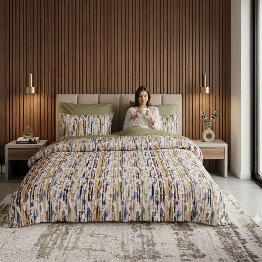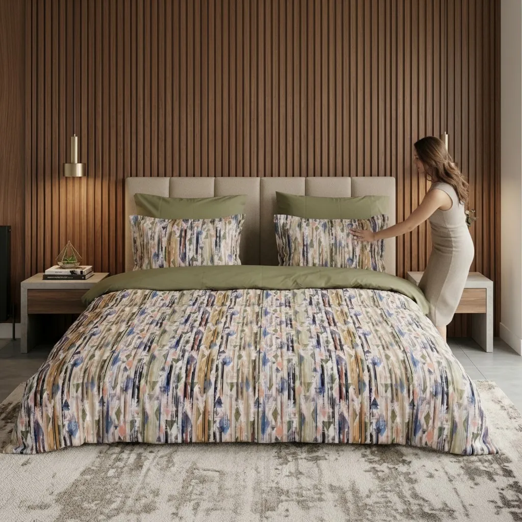 Descriere: Material: 100% bumbac natural, moale și rezistent Densitate: 130 g/mp - echilibru perfect între durabilitate și confort Imprimare digitală: culori vii, rezistente în timp Design reversibil: o față uni + o față imprimată