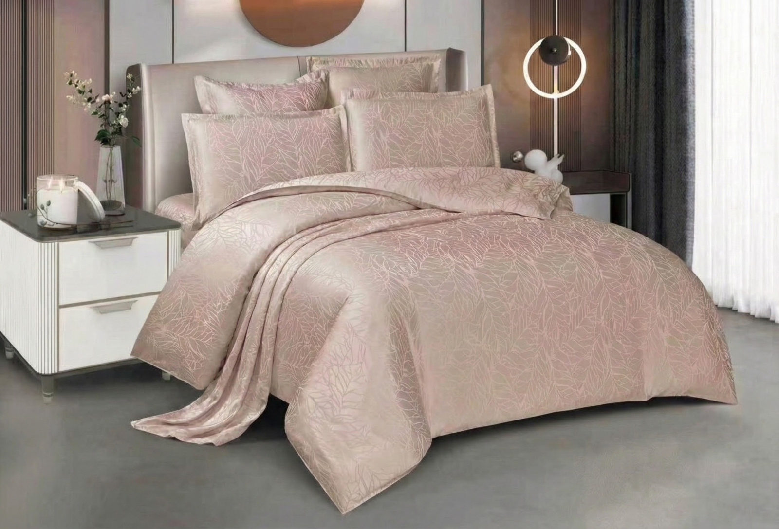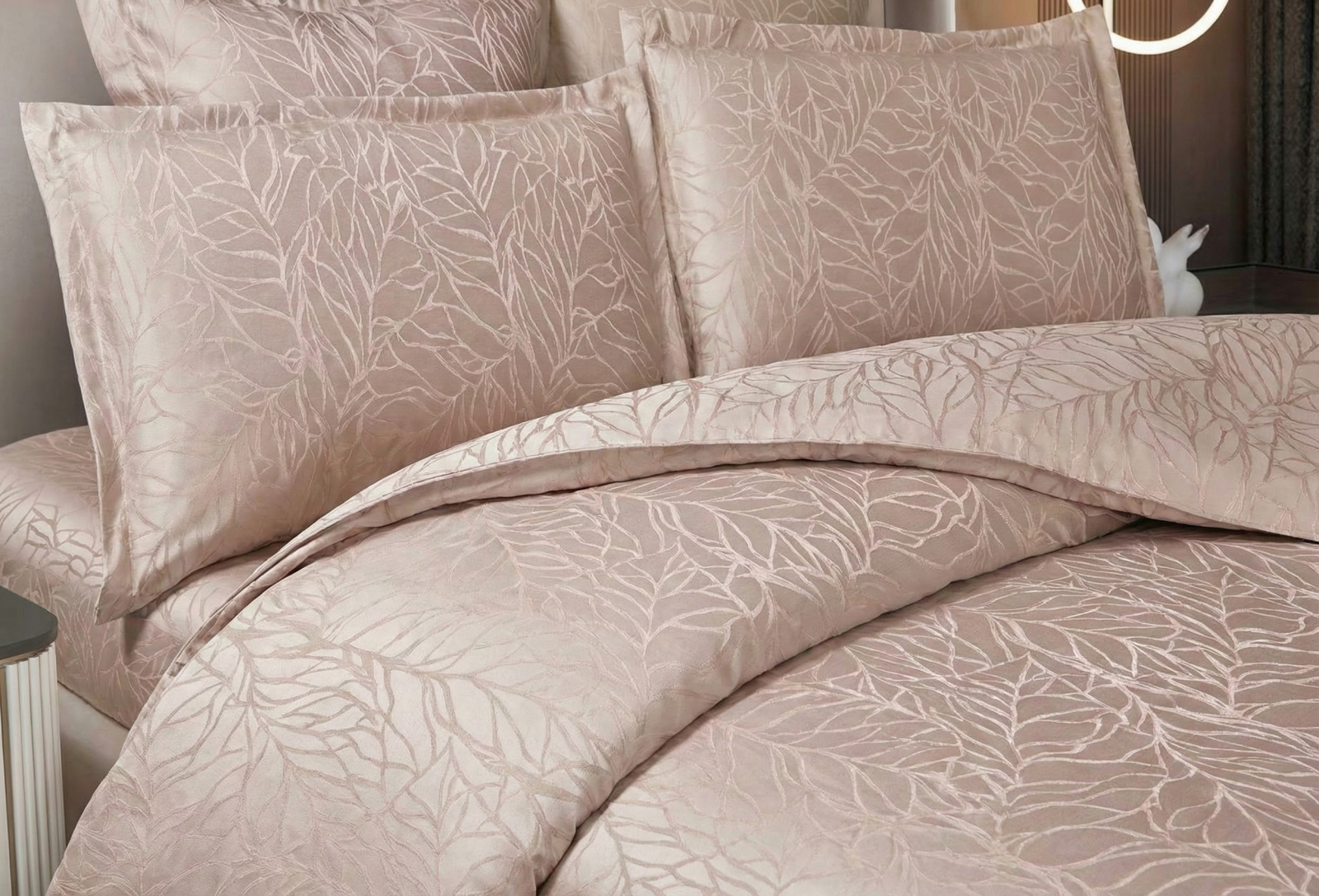 Lenjeria pat Jaquard 6 piese este ambalată în cutie și pungă CADOU! Această lenjerie de pat reprezintă o piesă de mobilier textil de lux, definită prin eleganță și rafinament, fiind ideală pentru un dormitor modern și sofisticat. Detalii de Design și Material Material Premium: Lenjeria este confecționată din Jacquard Satin de înaltă calitate, care oferă o strălucire discretă și o senzație mătăsoasă la atingere. Model Texturat: Designul prezintă un motiv vegetal delicat, cu frunze stilizate țesute direct în material prin tehnica Jacquard, ceea ce conferă profunzime și un aspect tridimensional. Finisaj Satinat: Textura satinată nu doar că arată spectaculos sub lumina ambientală, dar este și extrem de plăcută pe piele, asigurând un confort termic optim. Paleta Cromatică și Versatilitate Setul este disponibil într-o gamă variată de culori rafinate, adaptabile oricărui stil de amenajare interioară: Verde Salvie / Mentă: Pentru o atmosferă calmă și naturală. Argintiu / Gri Metalizat: Pentru un decor minimalist și ultra-modern. Roz Pudrat / Rose: Pentru o notă romantică și caldă. Bej Perlat / Șampanie: Pentru o eleganță clasică și luminoasă. Lila / Mov Regal: Pentru un aspect dramatic și luxuriant. Compoziția Setului De regulă, un astfel de set "Premium" este conceput pentru a oferi un aspect complet patului: Cearșaf de pilotă cu închidere discretă. Cearșaf de pat de dimensiuni generoase. Fețe de pernă (50cm x 70cm și 70cm x 70cm) care completează designul prin borduri elegante. Dacă ești în căutarea acelui sentiment de "hotel de 5 stele" chiar la tine acasă, colecția noastră din Jacquard Satin este alegerea perfectă. Design Sofisticat: Modelul cu frunze mătăsoase, țesut direct în material prin tehnica Jacquard, oferă o textură tridimensională spectaculoasă. Strălucire Nobilă: Satinul de înaltă calitate reflectă lumina într-un mod discret, aducând un plus de luminozitate camerei tale. Confort Absolut: Textura fină și răcoroasă îți promite cele mai odihnitoare nopți.