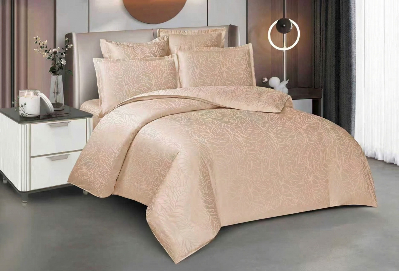 Lenjeria pat Jaquard 6 piese este ambalată în cutie și pungă CADOU! Această lenjerie de pat reprezintă o piesă de mobilier textil de lux, definită prin eleganță și rafinament, fiind ideală pentru un dormitor modern și sofisticat. Detalii de Design și Material Material Premium: Lenjeria este confecționată din Jacquard Satin de înaltă calitate, care oferă o strălucire discretă și o senzație mătăsoasă la atingere. Model Texturat: Designul prezintă un motiv vegetal delicat, cu frunze stilizate țesute direct în material prin tehnica Jacquard, ceea ce conferă profunzime și un aspect tridimensional. Finisaj Satinat: Textura satinată nu doar că arată spectaculos sub lumina ambientală, dar este și extrem de plăcută pe piele, asigurând un confort termic optim. Paleta Cromatică și Versatilitate Setul este disponibil într-o gamă variată de culori rafinate, adaptabile oricărui stil de amenajare interioară: Verde Salvie / Mentă: Pentru o atmosferă calmă și naturală. Argintiu / Gri Metalizat: Pentru un decor minimalist și ultra-modern. Roz Pudrat / Rose: Pentru o notă romantică și caldă. Bej Perlat / Șampanie: Pentru o eleganță clasică și luminoasă. Lila / Mov Regal: Pentru un aspect dramatic și luxuriant. Compoziția Setului De regulă, un astfel de set "Premium" este conceput pentru a oferi un aspect complet patului: Cearșaf de pilotă cu închidere discretă. Cearșaf de pat de dimensiuni generoase. Fețe de pernă (50cm x 70cm și 70cm x 70cm) care completează designul prin borduri elegante. Dacă ești în căutarea acelui sentiment de "hotel de 5 stele" chiar la tine acasă, colecția noastră din Jacquard Satin este alegerea perfectă. Design Sofisticat: Modelul cu frunze mătăsoase, țesut direct în material prin tehnica Jacquard, oferă o textură tridimensională spectaculoasă. Strălucire Nobilă: Satinul de înaltă calitate reflectă lumina într-un mod discret, aducând un plus de luminozitate camerei tale. Confort Absolut: Textura fină și răcoroasă îți promite cele mai odihnitoare nopți.