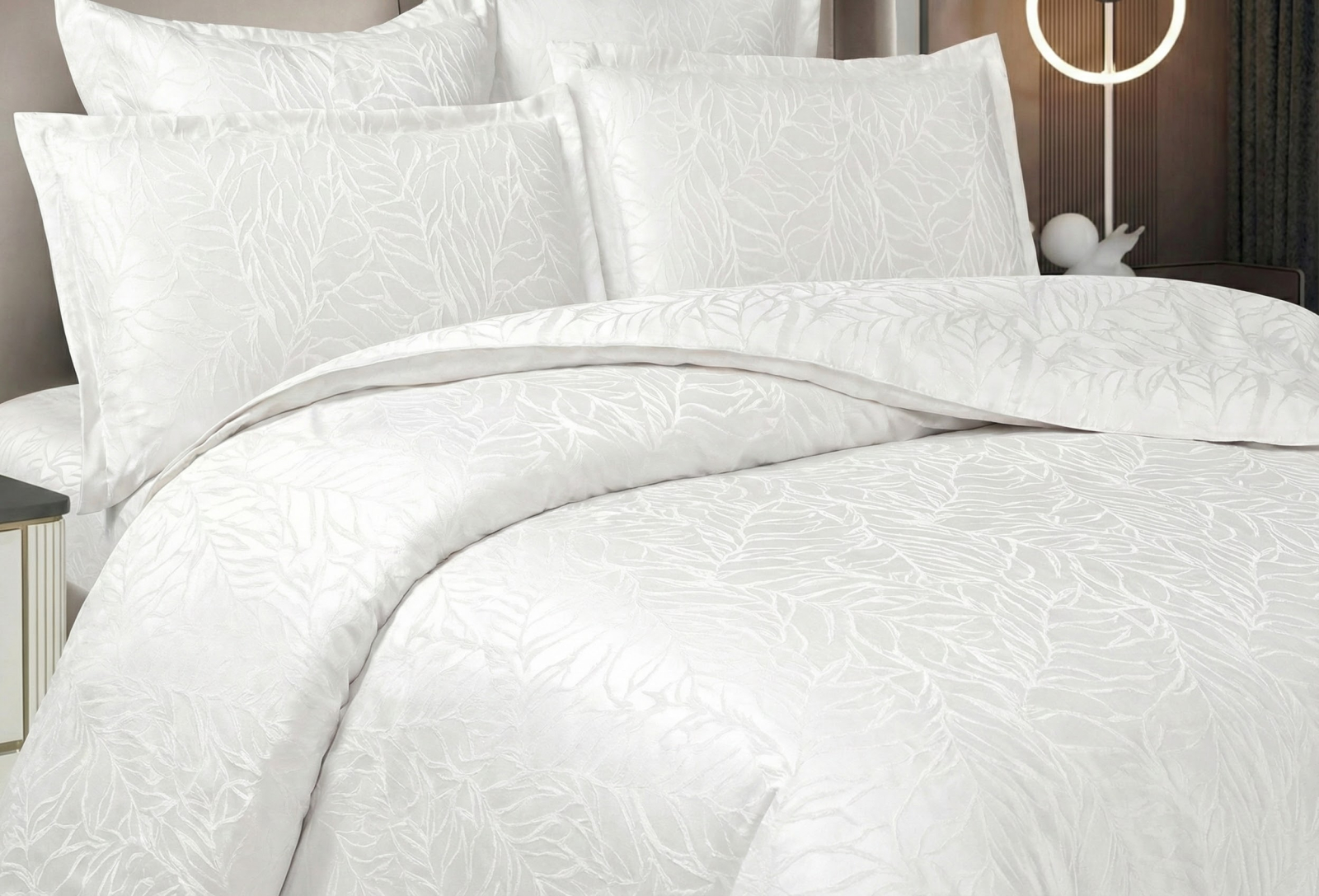 Lenjeria pat Jaquard 6 piese este ambalată în cutie și pungă CADOU! Această lenjerie de pat reprezintă o piesă de mobilier textil de lux, definită prin eleganță și rafinament, fiind ideală pentru un dormitor modern și sofisticat. Detalii de Design și Material Material Premium: Lenjeria este confecționată din Jacquard Satin de înaltă calitate, care oferă o strălucire discretă și o senzație mătăsoasă la atingere. Model Texturat: Designul prezintă un motiv vegetal delicat, cu frunze stilizate țesute direct în material prin tehnica Jacquard, ceea ce conferă profunzime și un aspect tridimensional. Finisaj Satinat: Textura satinată nu doar că arată spectaculos sub lumina ambientală, dar este și extrem de plăcută pe piele, asigurând un confort termic optim. Paleta Cromatică și Versatilitate Setul este disponibil într-o gamă variată de culori rafinate, adaptabile oricărui stil de amenajare interioară: Verde Salvie / Mentă: Pentru o atmosferă calmă și naturală. Argintiu / Gri Metalizat: Pentru un decor minimalist și ultra-modern. Roz Pudrat / Rose: Pentru o notă romantică și caldă. Bej Perlat / Șampanie: Pentru o eleganță clasică și luminoasă. Lila / Mov Regal: Pentru un aspect dramatic și luxuriant. Compoziția Setului De regulă, un astfel de set "Premium" este conceput pentru a oferi un aspect complet patului: Cearșaf de pilotă cu închidere discretă. Cearșaf de pat de dimensiuni generoase. Fețe de pernă (50cm x 70cm și 70cm x 70cm) care completează designul prin borduri elegante. Dacă ești în căutarea acelui sentiment de "hotel de 5 stele" chiar la tine acasă, colecția noastră din Jacquard Satin este alegerea perfectă. Design Sofisticat: Modelul cu frunze mătăsoase, țesut direct în material prin tehnica Jacquard, oferă o textură tridimensională spectaculoasă. Strălucire Nobilă: Satinul de înaltă calitate reflectă lumina într-un mod discret, aducând un plus de luminozitate camerei tale. Confort Absolut: Textura fină și răcoroasă îți promite cele mai odihnitoare nopți.