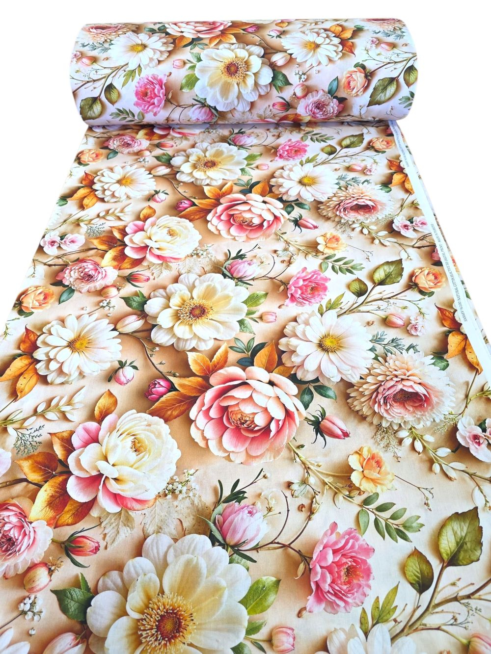 Material textil ranforce 5D, 240cm, bumbac 100%, Crem cu trandafiri