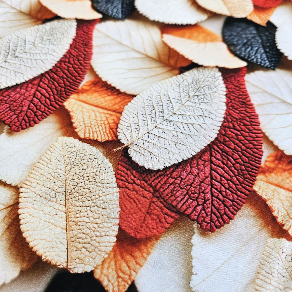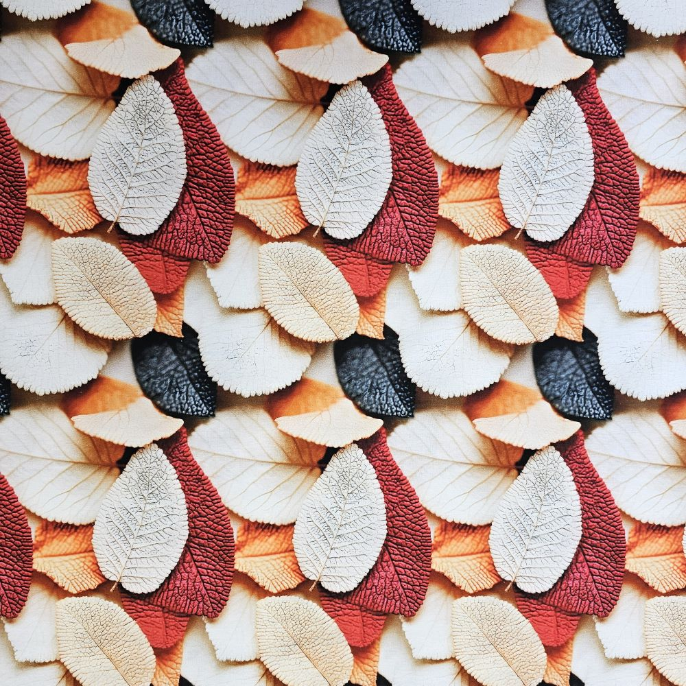 Material textil ranforce 5D, 240cm, bumbac 100%, Frunze rosii si crem