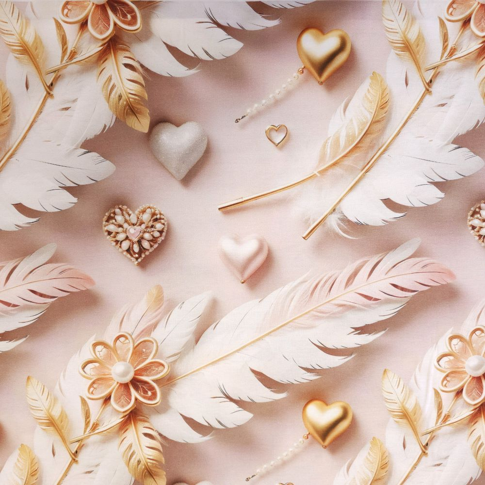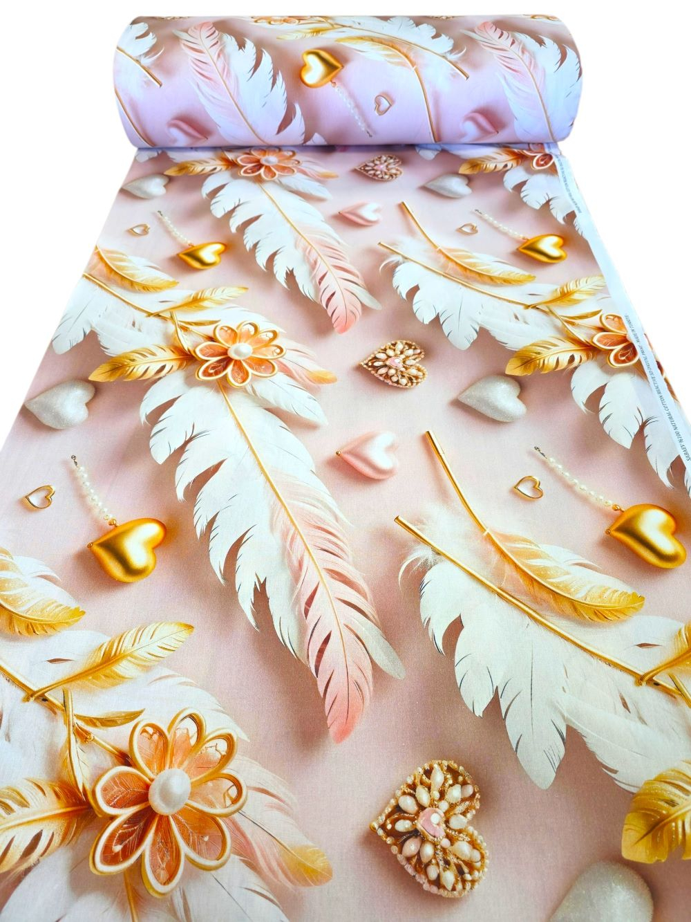Material textil ranforce 5D, 240cm, bumbac 100%, Roz cu fulg si inimioare