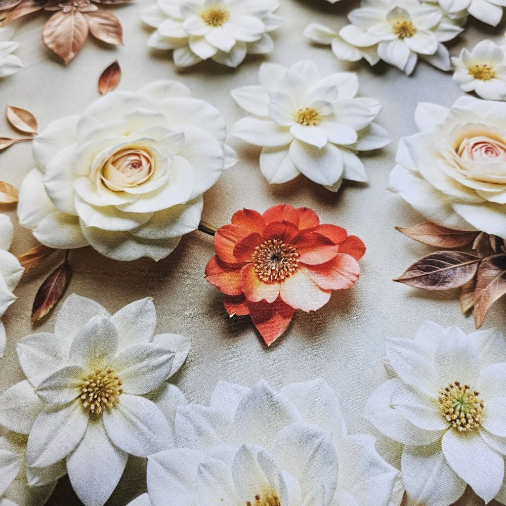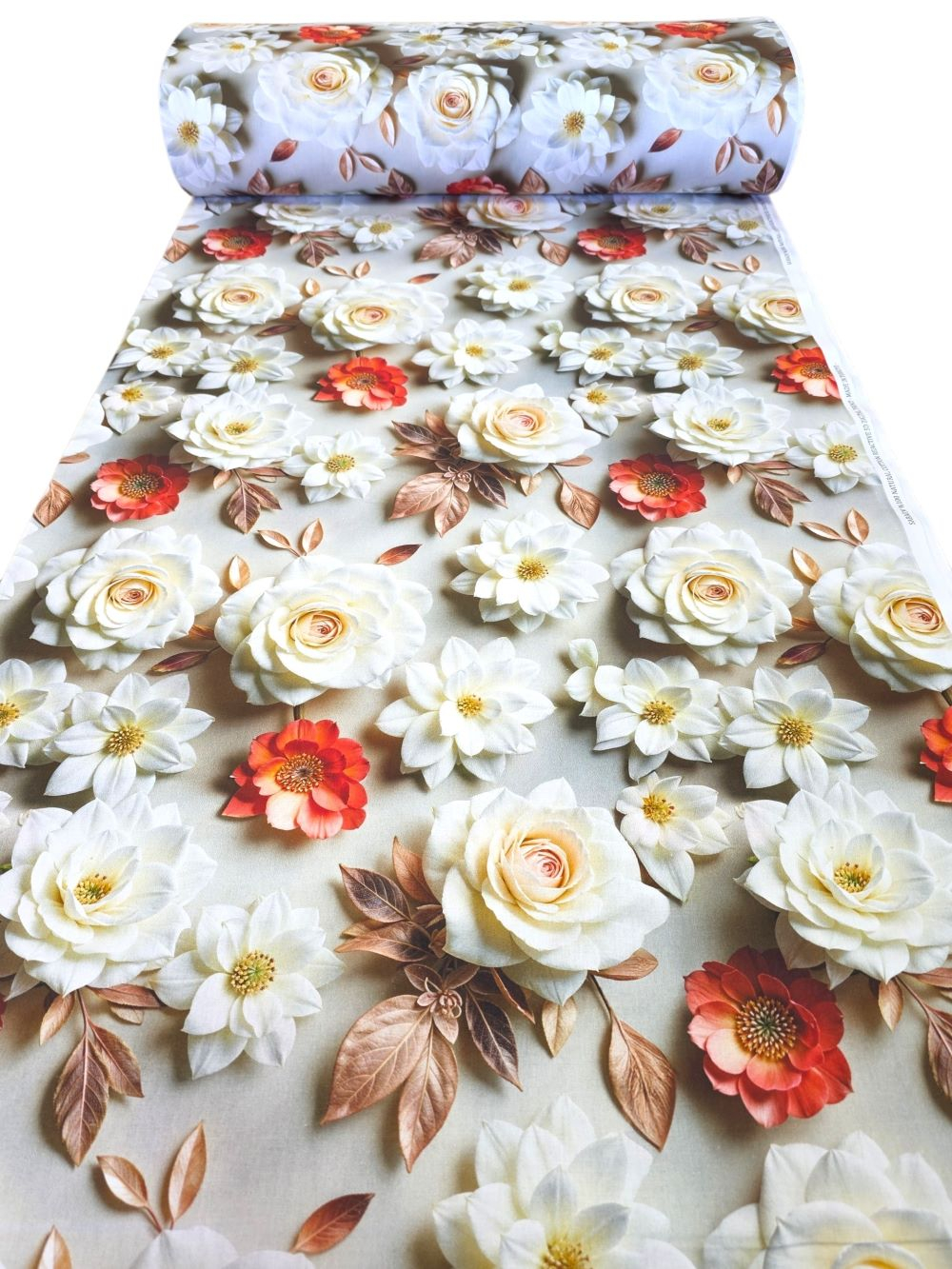 Material textil ranforce 5D, 240cm, bumbac 100%, Trandafiri albi si flori rosii