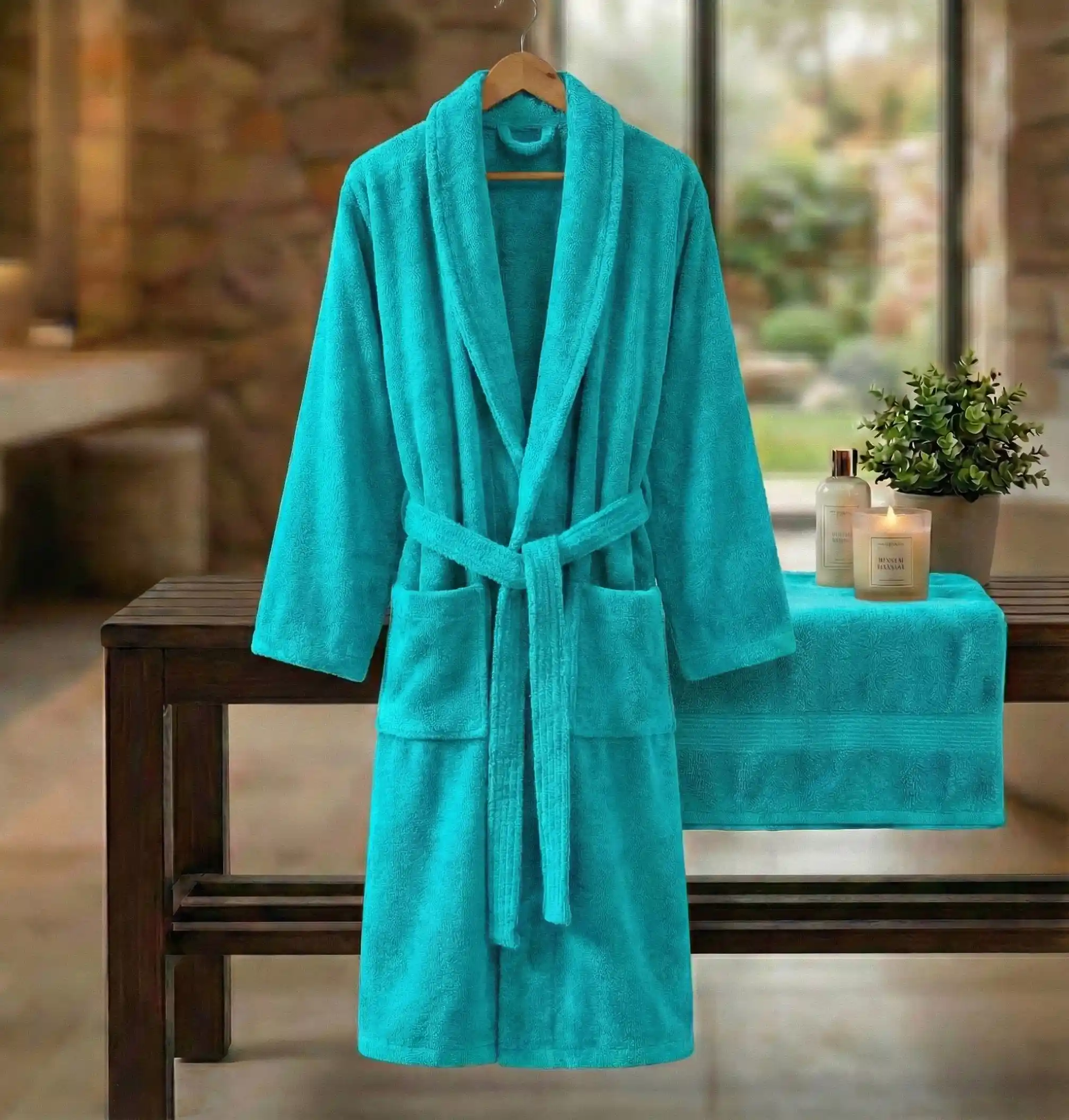 HALAT DE BAIE VELUR100% BUMBAC - XXL (TURCOAZ) - L/XL
