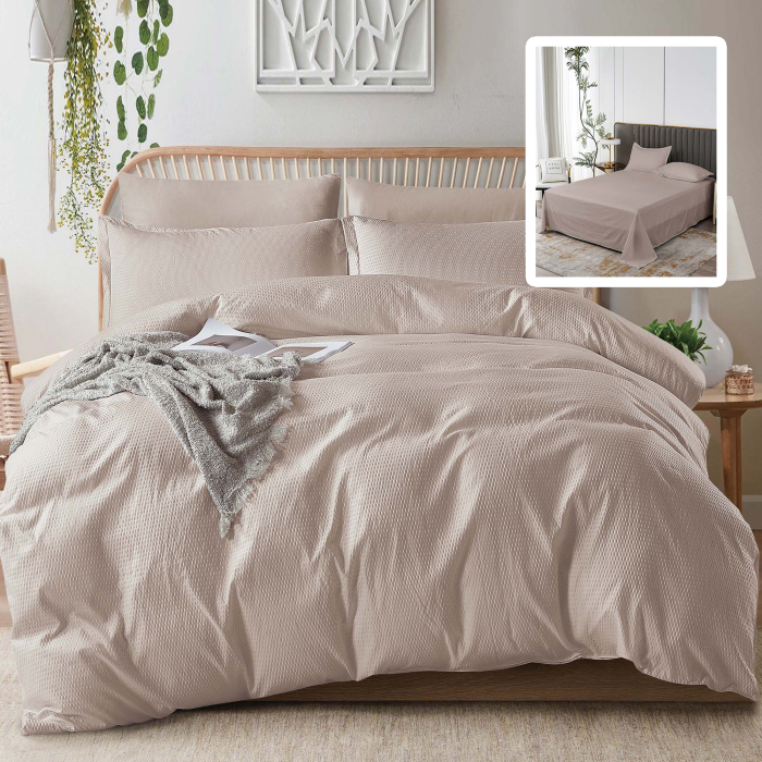 LENJERIE DE PAT CREPONATa UNI 6 PIESE CU CEARSAF (CAPPUCINO)