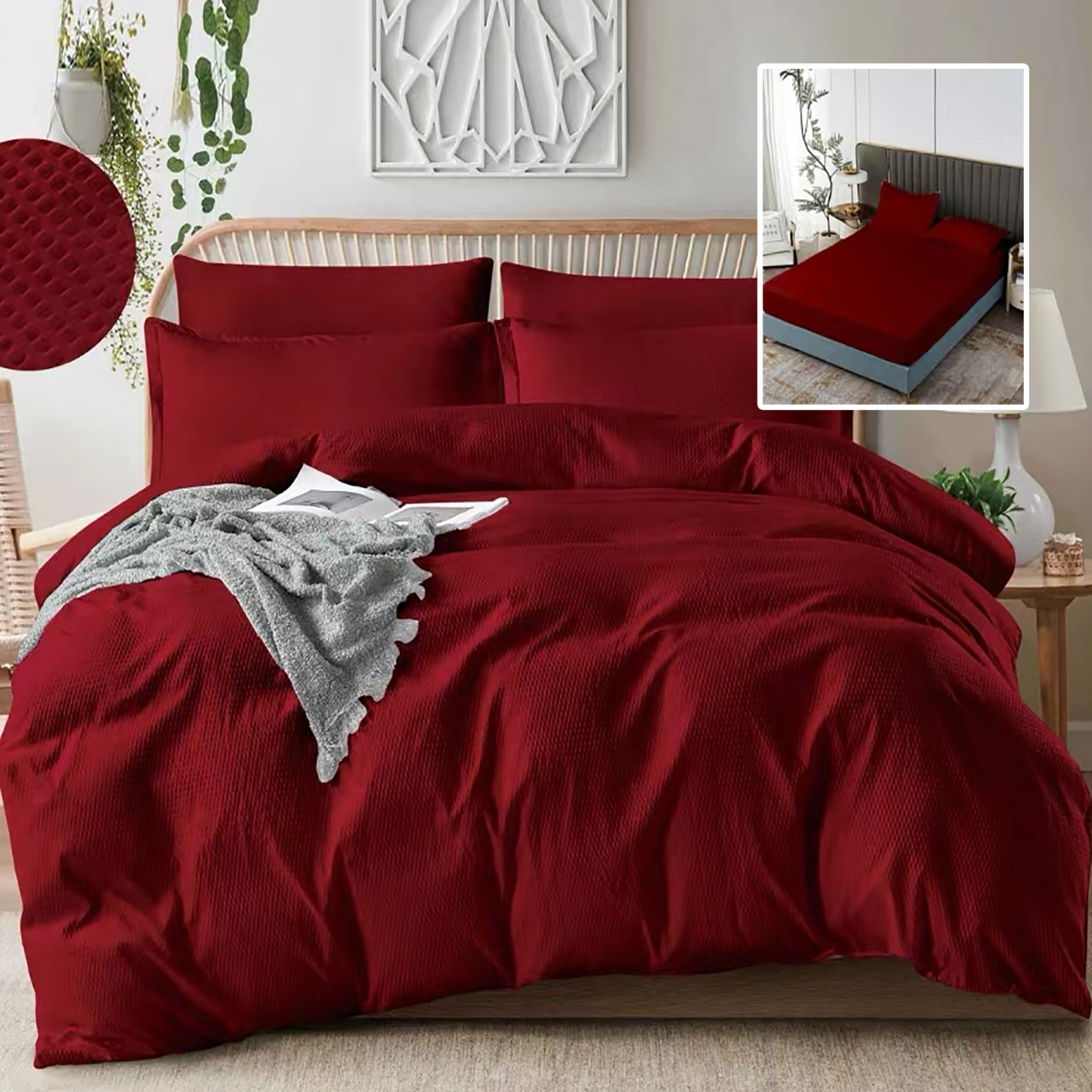 LENJERIE DE PAT CREPONATa UNI 6 PIESE CU HUSa (ROSU)