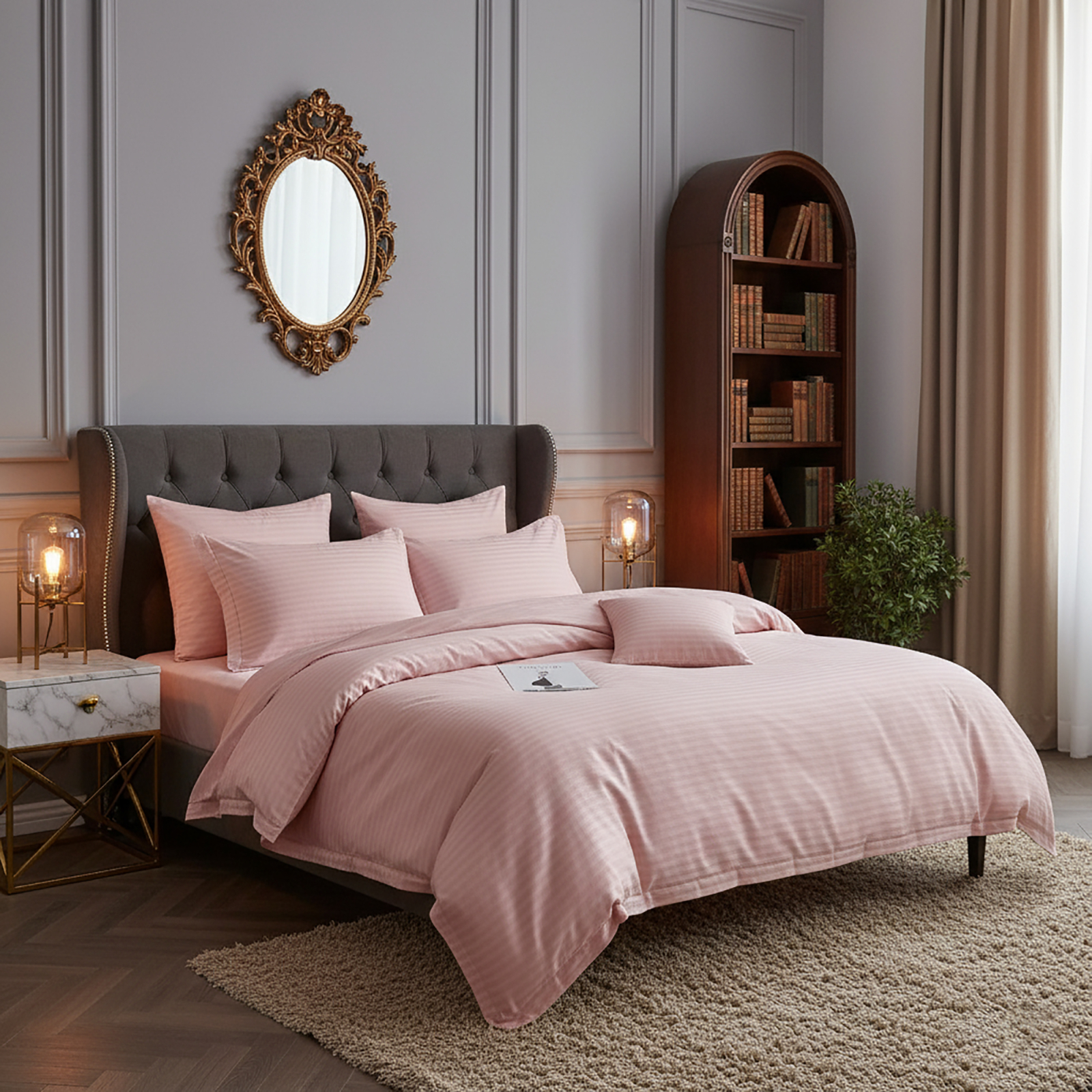 Lenjerie de pat damasc HORECA (GROS) - ROZ PUDRA - king size