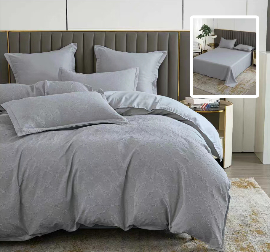 LENJERIE DE PAT NATUR UNI BAROQUE 6 PIESE CU CEARSAF (GRI)