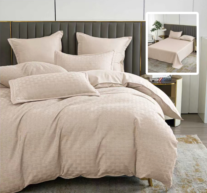 LENJERIE DE PAT NATUR UNI STRIPE 6 PIESE CU CEARSAF (BEJ)