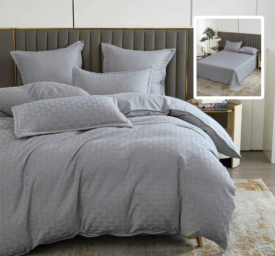 LENJERIE DE PAT NATUR UNI STRIPE 6 PIESE CU CEARSAF (GRI)