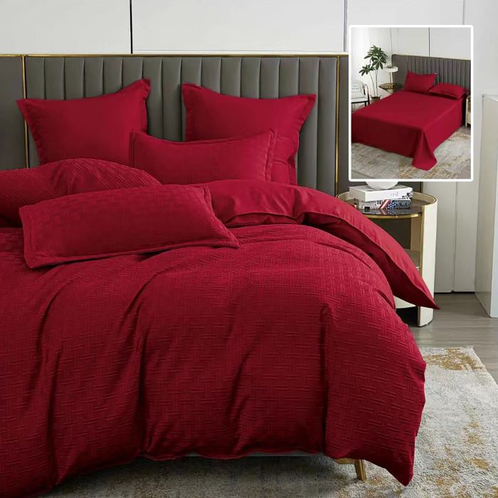 LENJERIE DE PAT NATUR UNI STRIPE 6 PIESE CU CEARSAF (ROSU)