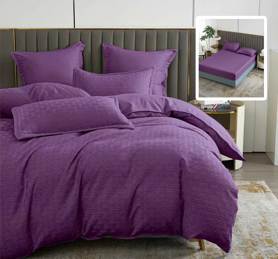 LENJERIE DE PAT NATUR UNI STRIPE 6 PIESE CU HUSa (MOV)
