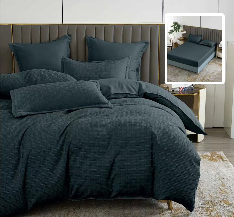 LENJERIE DE PAT NATUR UNI STRIPE 6 PIESE CU HUSa (NEGRU)
