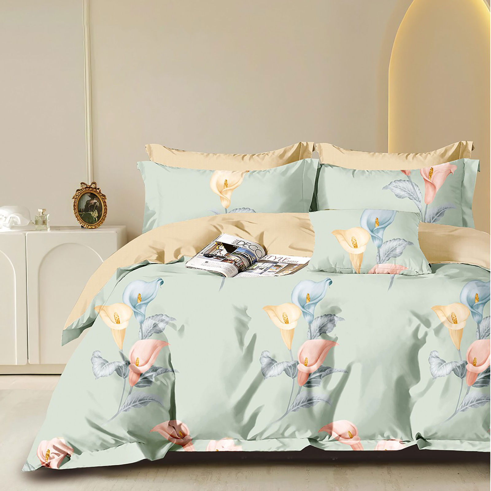 Lenjerie cu două fețe, ambalată în cutie cadou.