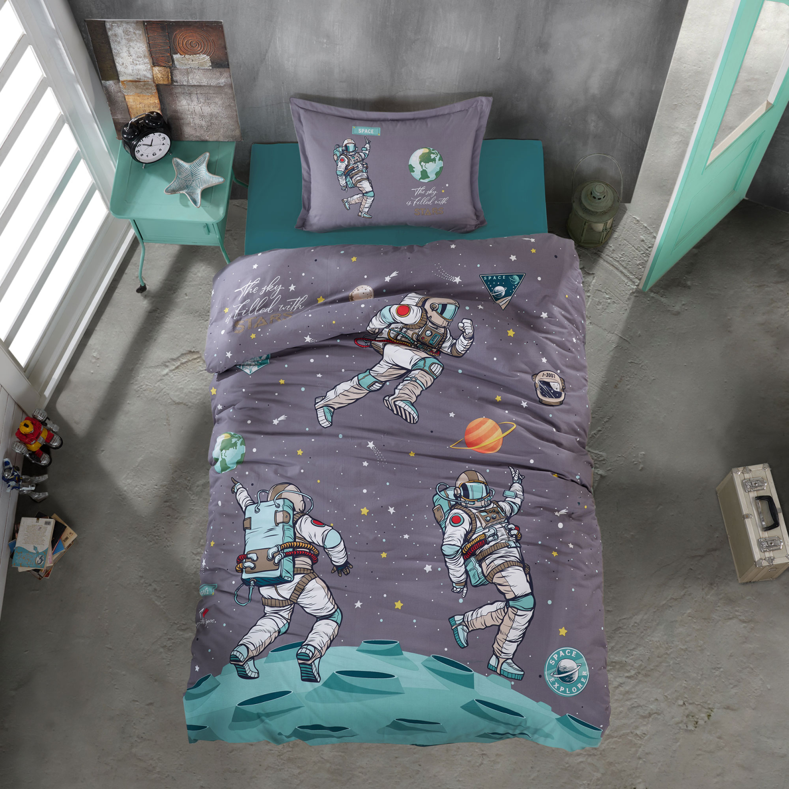 Lenjerie de pat ranforce 100% bumbac - o persoana (Space)