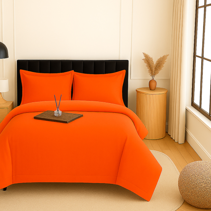 Lenjerie pat damasc policoton XXL - SUPER PRET (ROSU-PORTOCALIU)