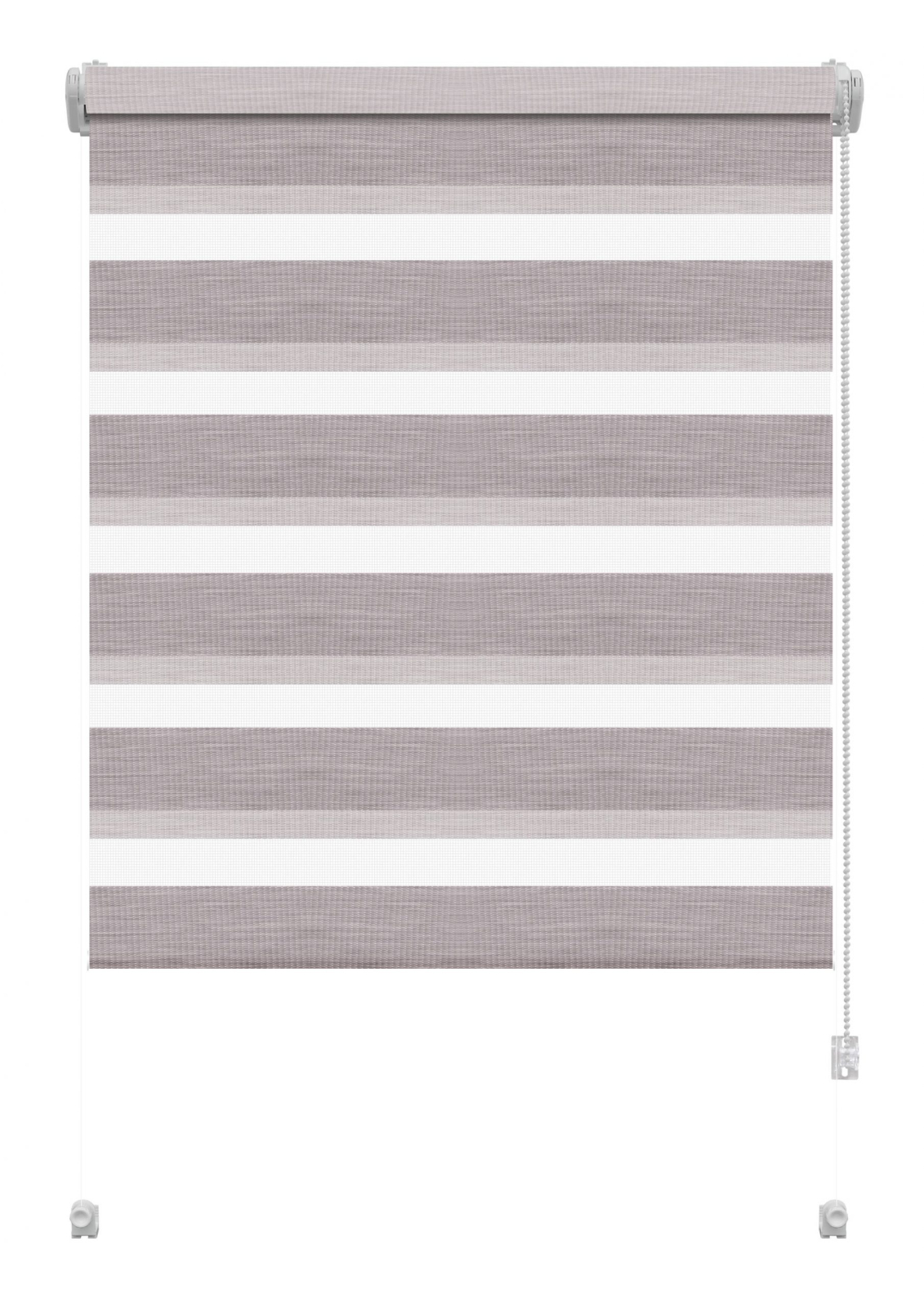Stor textil Zebra, tip zi-noapte, cu rulou metal mini Ø18 mm, se poate monta pe rama geamului fără găurire și înșurubare. Elementele de prindere se pot clipsa pe aproape orice tip de fereastră și se poate monta și prin lipire. Stofa este confecționată din polyester 100% și este țesută în fâșii alternative transparente și opace care se suprapun in două straturi și se desfașoară în direcții opuse. În acest fel, gradul de discreție sau de iluminare se pot doza foarte exact. Se rulează / derulează cu ajutorul unui mecanism cu lanț. Lanțul se poate monta atât în stânga, cât și în dreapta.